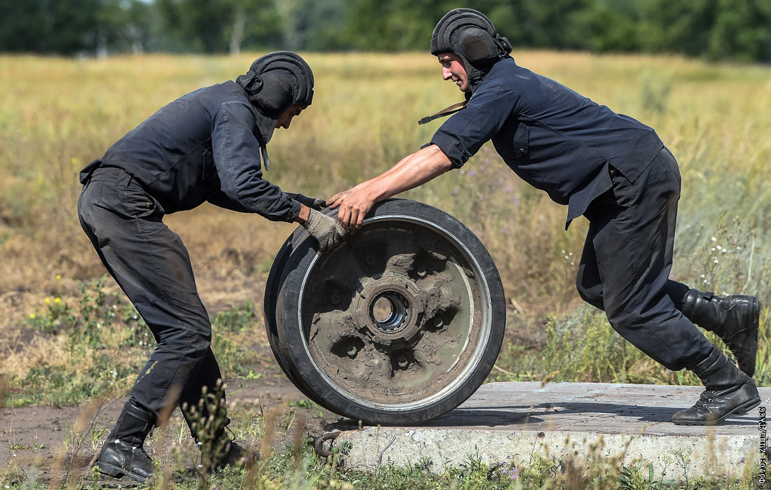 Военнослужащие из России во время конкурса ремонтных подразделений "Рембат" на полигоне Омского автобронетанкового инженерного института