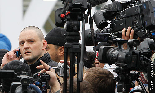 Сергей Удальцов в ходе акции оппозиции на Пушкинской площади 31 марта