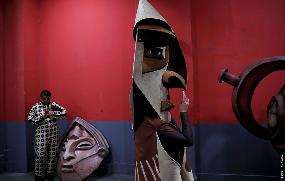 Артисты ожидают участия в церемонии закрытия Панамериканских игр на Национальном стадионе в Лиме, Перу