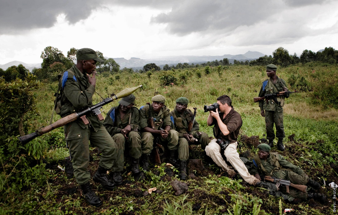 Фотограф Reuters снимает солдат конголезской армии в восточной части Конго. Декабрь 2008 года.