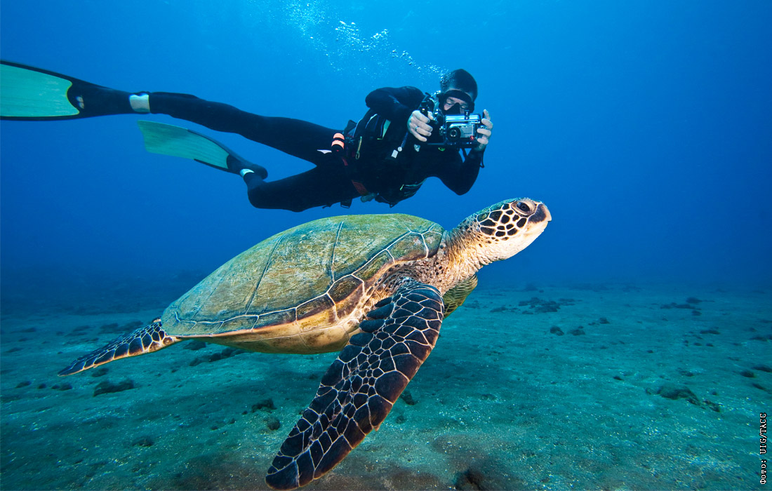 Во время подводной съемки зеленых морских черепах. Август 2005 года.
