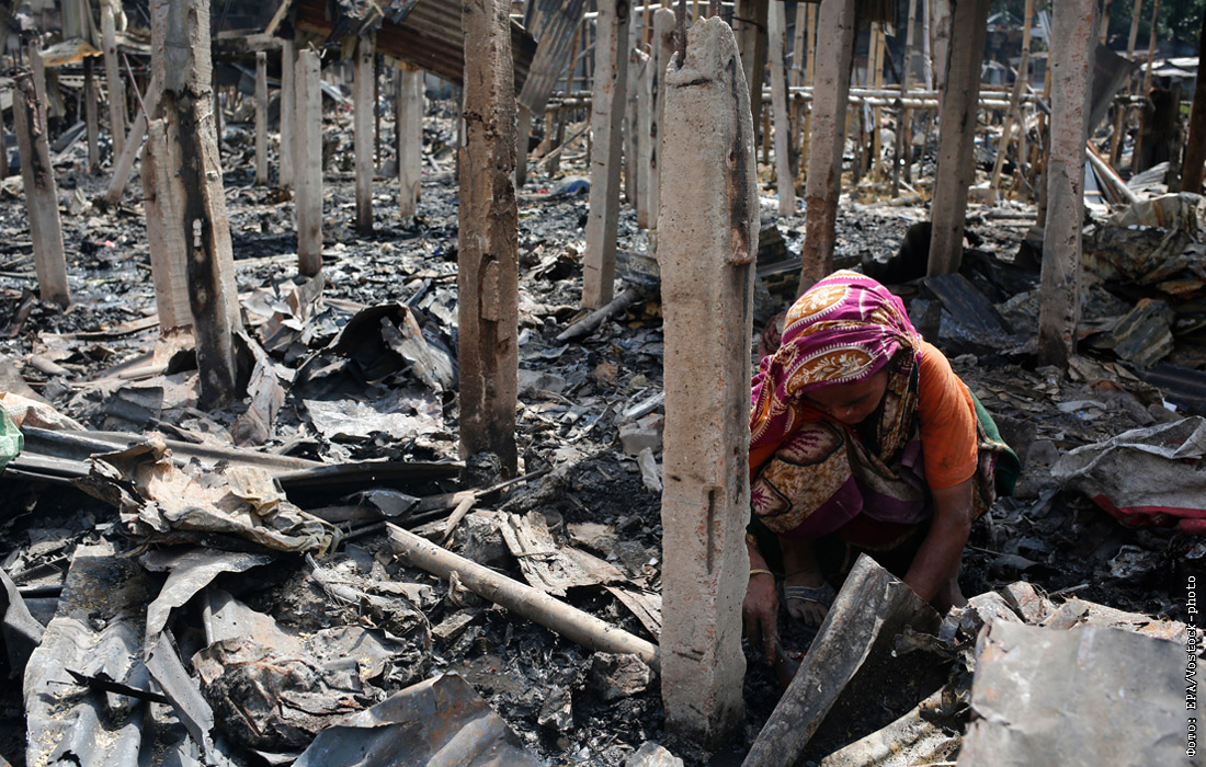 Жители трущоб разыскивают свои вещи в сгоревших домах в Дакке после разрушительного пожара, который возник поздно вечером в пятницу в районе Мирпур. Огонь распространялся настолько быстро, что жители района едва успевали покинуть свои дома. Всего сгорели около двух тысяч лачуг. Как минимум десять тысяч человек лишились крова.