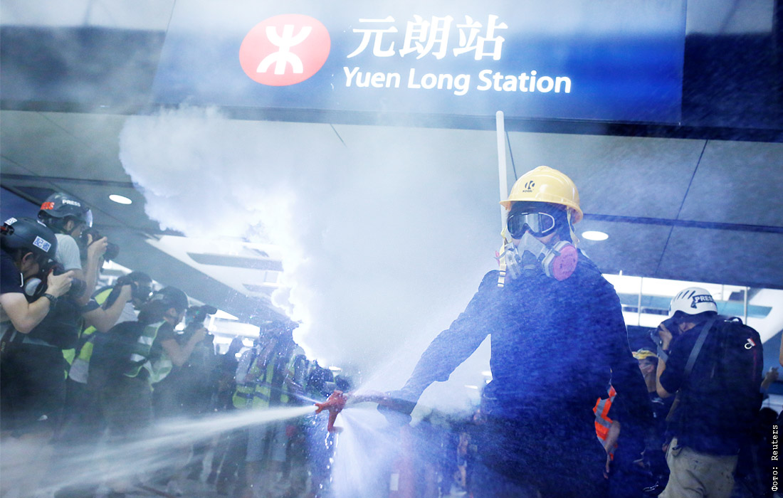 Акция протеста на станции метро Юн Лонг в Гонконге