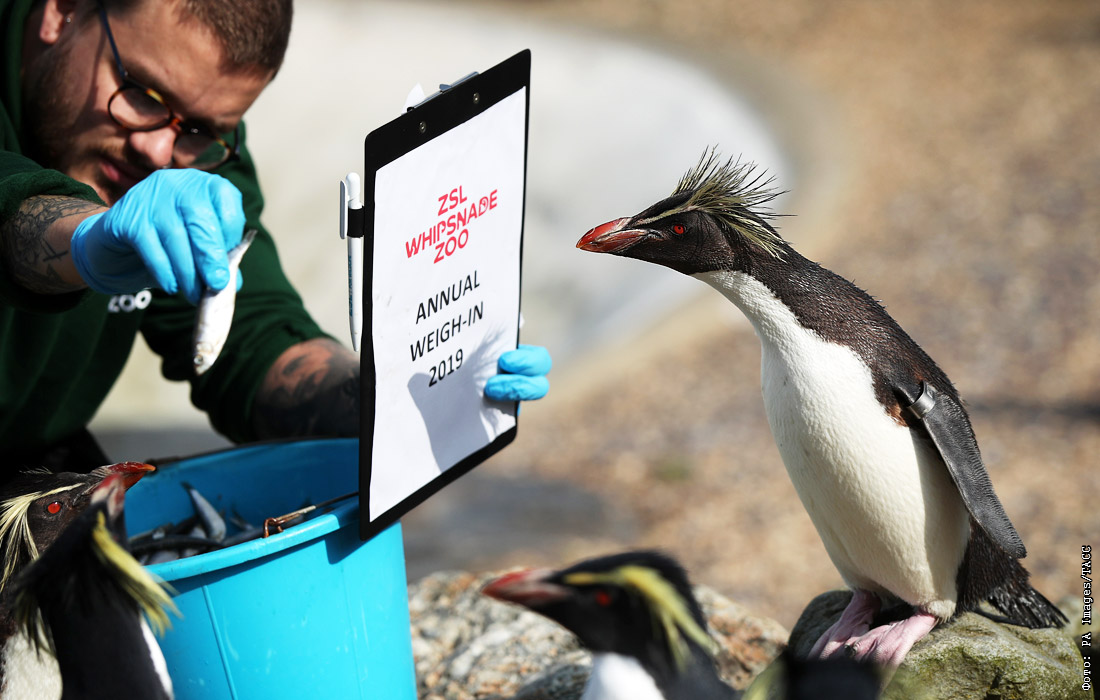 Контрольное взвешивание животных в Уипснейдском зоопарке, Великобритания