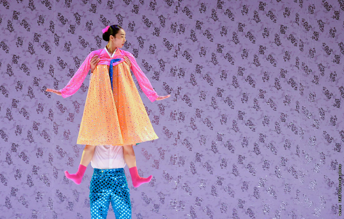 Южнокорейские исполнители репетируют "Танец Северной Кореи" на фестивале искусств в Тайбэе