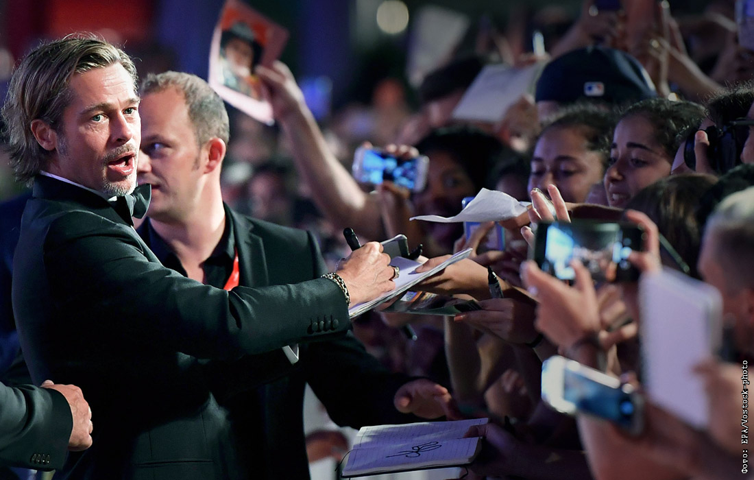 Брэд Питт раздает автографы на красной ковровой дорожке кинофестиваля