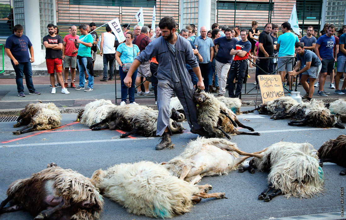 Французские фермеры провели акцию протеста в Байонне против бездействия властей в связи с участившимися нападениями медведей на овец на Пиренеях