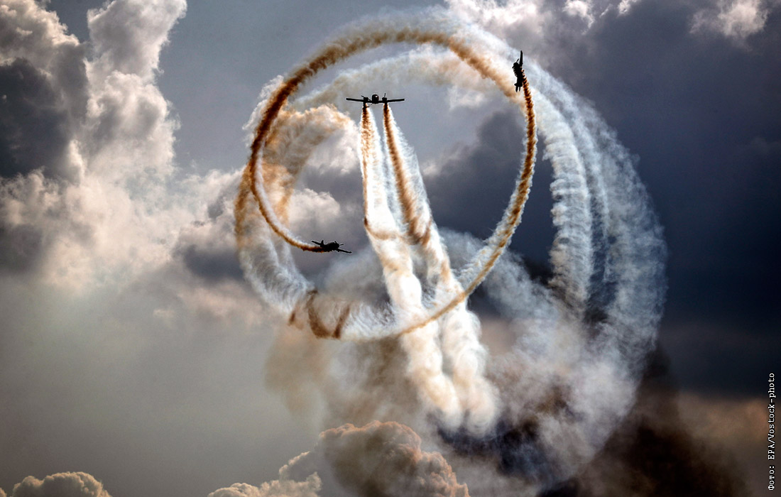 Пилотажная группа "Первый полет" выступает на международном авиационно-космическом салоне МАКС 2019 в Жуковском
