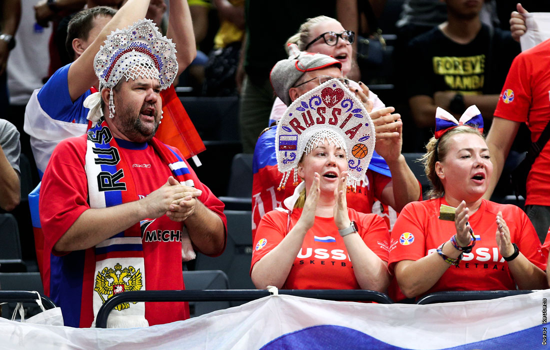 Российские болельщики во время игры Россия - Польша на Чемпионате мира по баскетболу в Китае