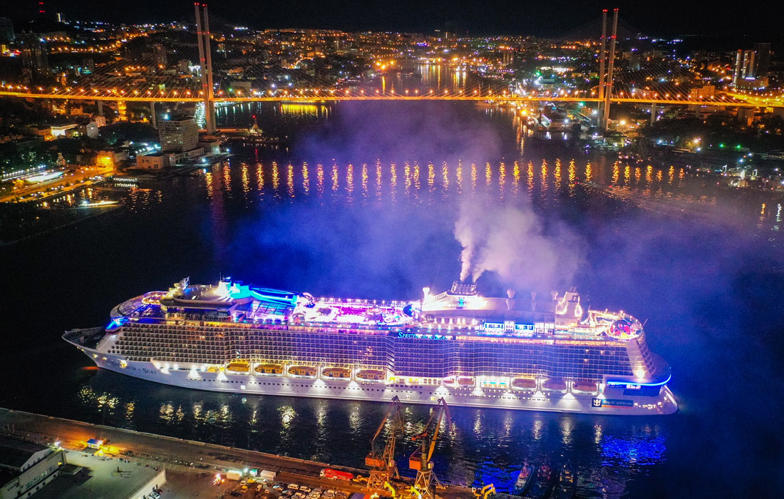 В порт Владивостока прибыл круизный лайнер Spectrum of the Seas с пятью тысячами туристов на борту. Длина лайнера составляет 347 метров, ширина - 41 метр, водоизмещение достигает почти 168,9 тыс. тонн. На борту есть свой автодром, аэротруба, амфитеатр и серия аттракционов виртуальной реальности.