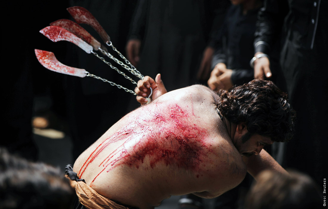 В пакистанском Лахоре в день Ашура сотни афганских мусульман-шиитов совершают кровавый обряд. Он заключается в истязании себя цепями и ножами, а также хождении по углям. Так шииты вспоминают в этот день о мученической смерти внука пророка Мухаммеда - имама Хусейна.