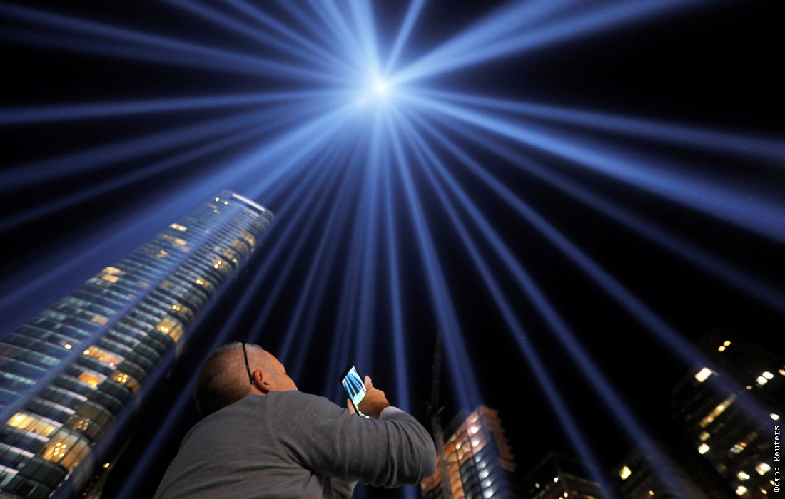 Cветовая инсталляция в память о жертвах терактов 11 сентября 2001 года в Нью-Йорке. 88 прожекторов, направленных в небо, создают два мощных луча света, похожих на башни-близнецы.