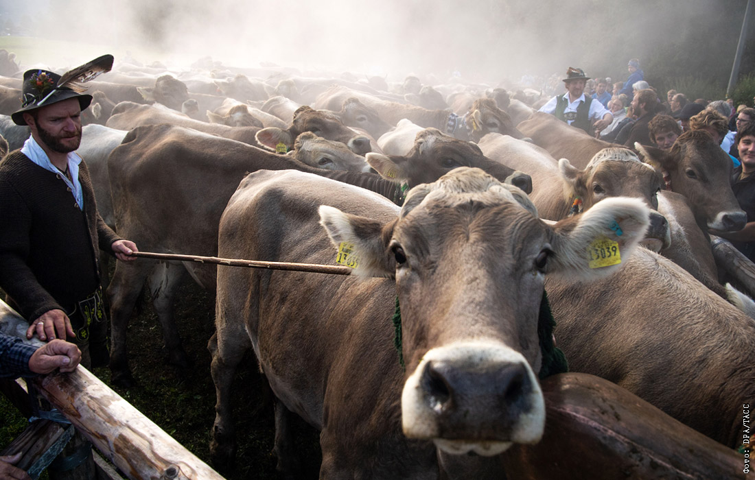 Баварские фермеры отметили традиционный праздник Альмабтриб - перегон коров с летних высокогорных альпийских пастбищ и возвращение их в зимние стойла