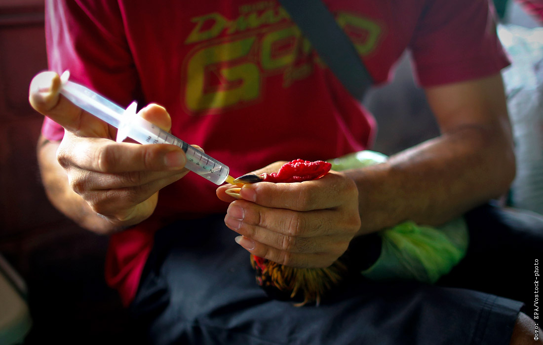Перед состязанием нередко птицам вводят витамины или средства, снижающие болевой порог
