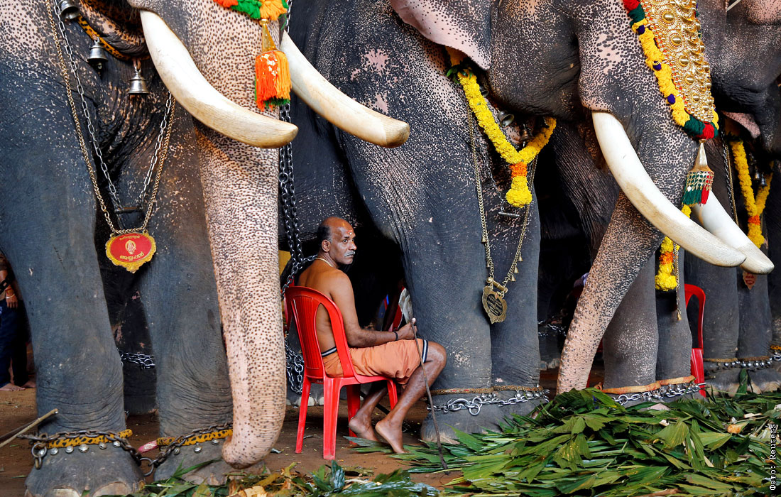 Слоны, участвующие в торжествах по случаю дня урожая Онам в Индии