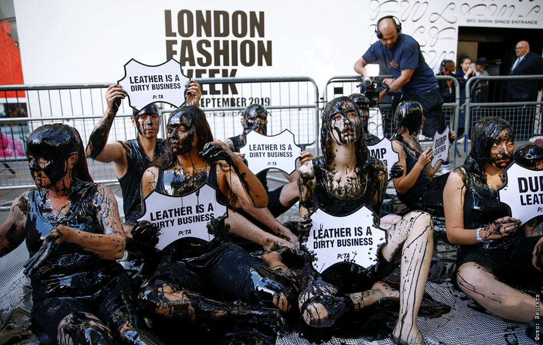 В день открытия Недели моды в Лондоне активисты PETA провели акцию протеста против кожевенной промышленности