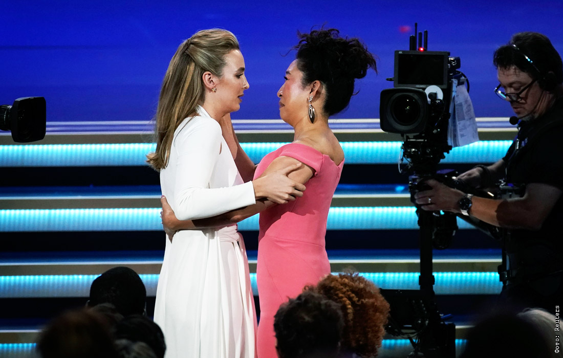 Приз за лучшую женскую роль в драматическом сериале получила Джоди Комер (слева), сыгравшая в сериале "Убивая Еву". Она обошла Эмилию Кларк ("Игра престолов") и Робин Райт ("Карточный домик").