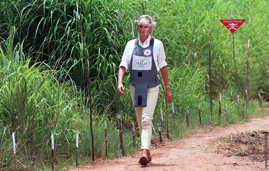 Во время тура по африканским странам принц Гарри посетил лагерь по ликвидации противопехотных мин в Анголе. Визит состоялся спустя 22 года после того, как принцесса Диана, надев на себя защитный жилет и маску, прошла через частично разминированное поле у ангольского города Уамбо. Фотографии этого события разошлись по всему миру, привлекая внимание к опасности оружия.