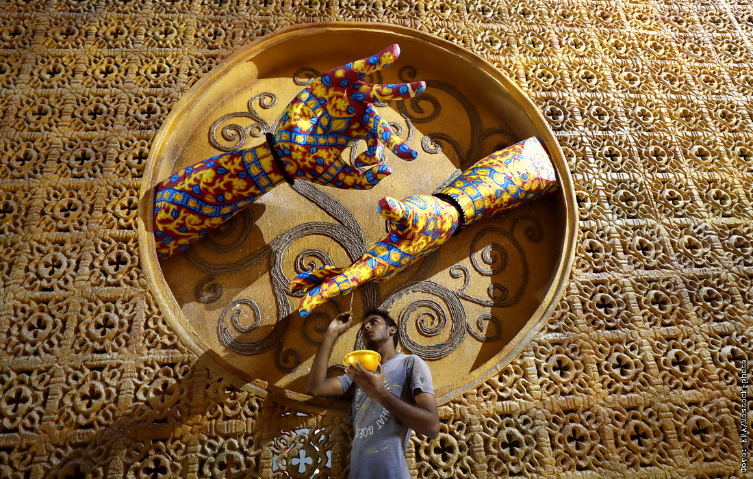 Подготовка к фестивалю Дурга-пуджа в Калькутте, Индия