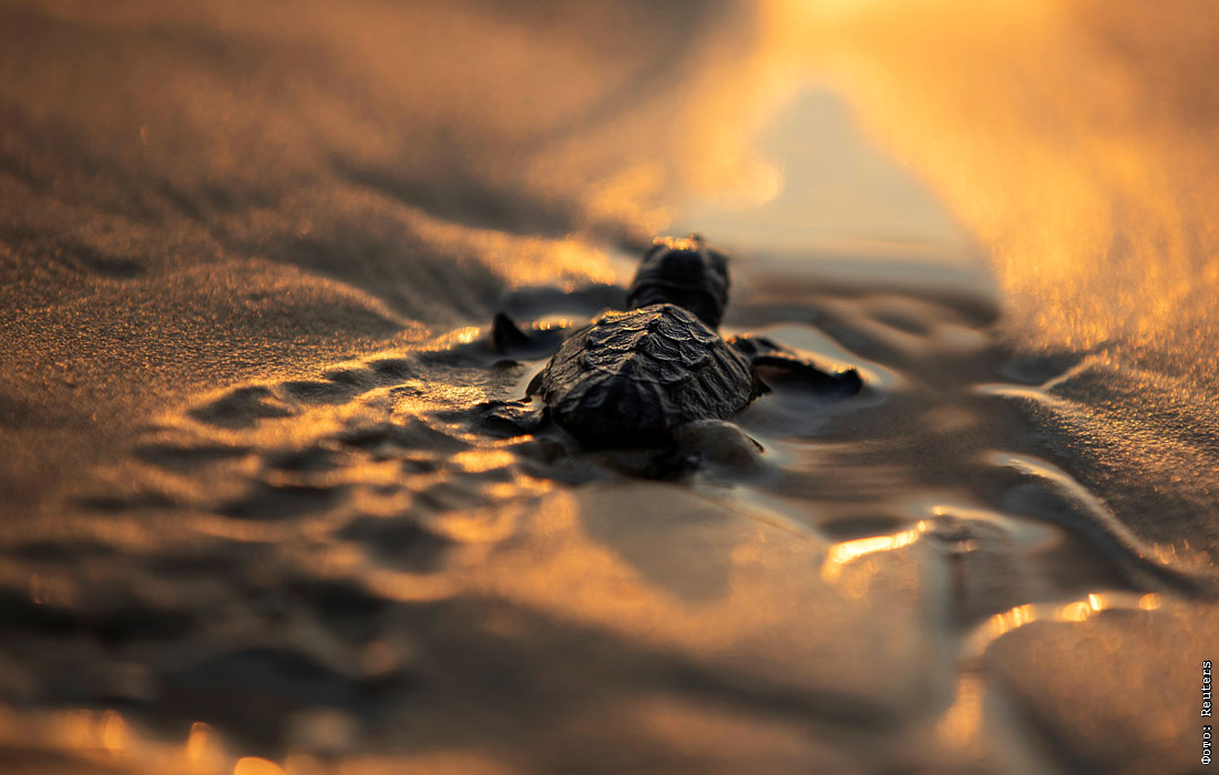 Недавно вылупившаяся морская черепаха впервые попала в Средиземное море в рамках программы сохранения израильского центра спасения морских черепах в Тель-Авиве