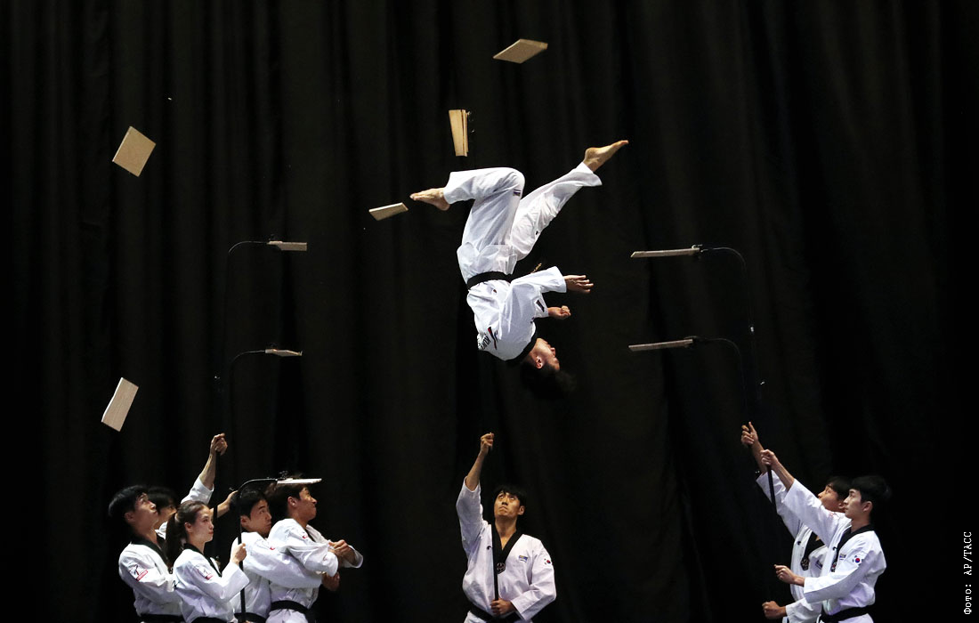Выступление южнокорейской команды по тхэквондо во время визита премьер-министра Болгарии в Сеул