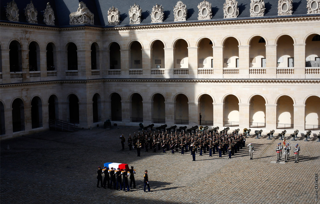 В понедельник, 30 сентября, у Дома инвалидов бывшему президенту были отданы воинские почести, после чего гроб с его телом доставили в церковь Сен-Сюльпис
