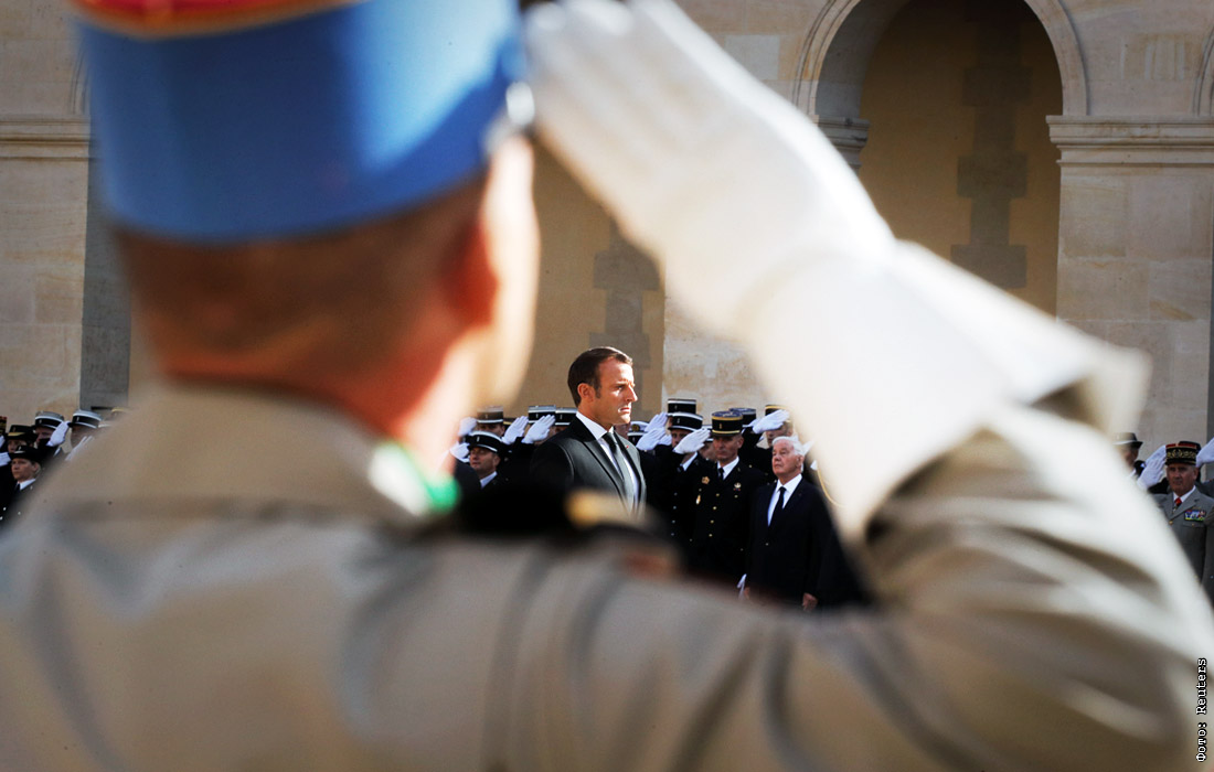 На церемонии прощания с политиком присутствовал действующий французский лидер Эммануэль Макрон