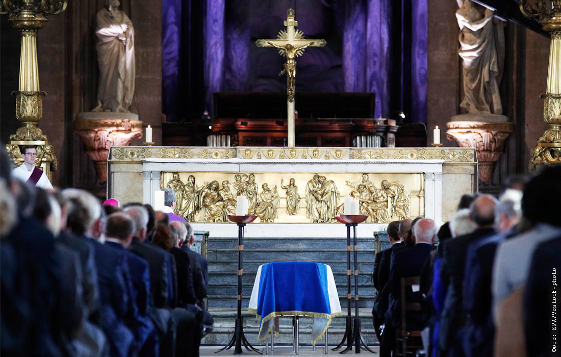 В старинной парижской церкви Сен-Сюльпис в присутствии родственников Ширака, президента Франции Эммануэля Макрона и зарубежных лидеров прошла заупокойная служба