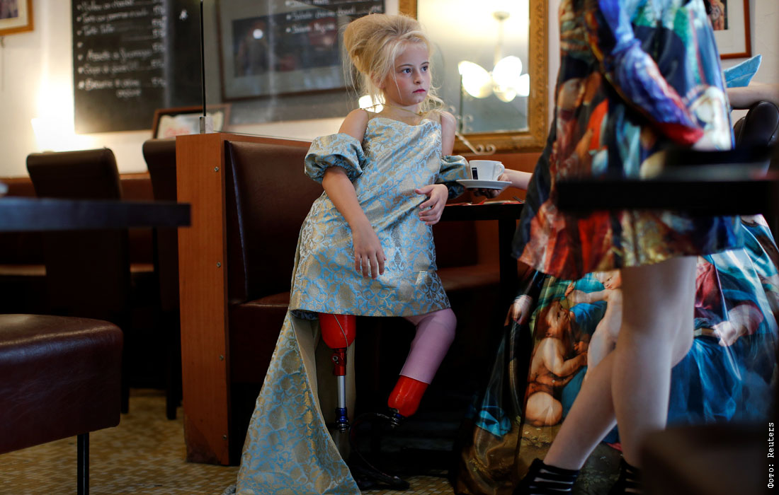 Девятилетняя модель Дэйзи-Мэй Деметр перед показом детской одежды Lulu et Gigi