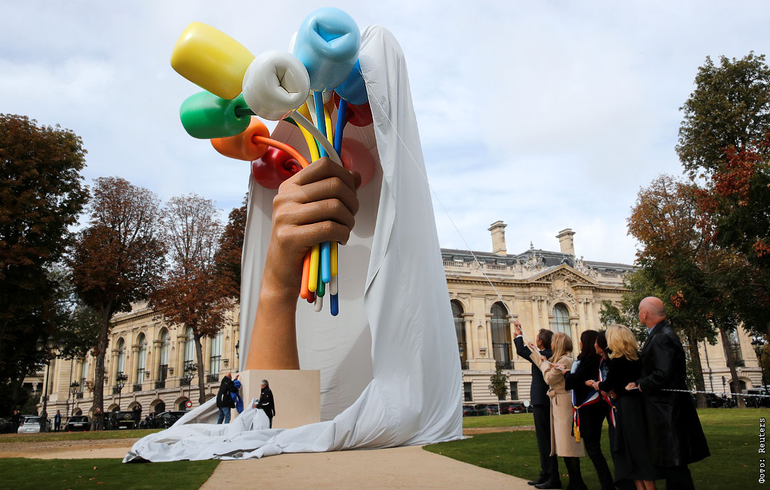 В Париже прошло открытие 12-метровой скульптуры популярного американского художника Джеффа Кунса "Букет тюльпанов". Скульптор подарил ее городу в память о жертвах терактов в ноябре 2015 года.