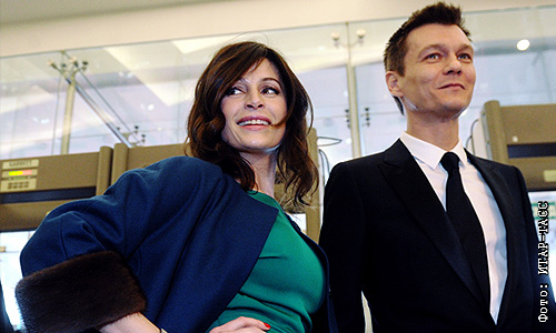 Актриса Оксана Фандера с супругом режиссером Филиппом Янковским на ХХV Юбилейной церемонии вручения Национальной кинематографической премии "НИКА" за 2011 год в КЗ "Крокус-Сити-Холл".