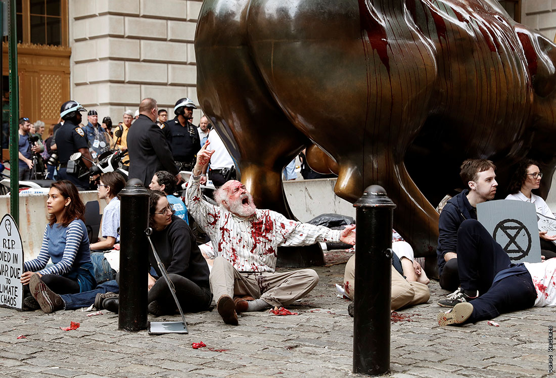 Движение Extinction Rebellion (XR), блокирующее автомобильное движение, чтобы привлечь внимание властей к экологическим проблемам, проводит акции сразу в нескольких городах мира (на фото Нью-Йорк)