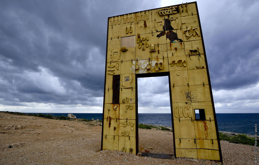 Памятник итальянского скульптора Миммо Паладино, посвященный погибшим в море Porta d’Europa на острове Лампедуза