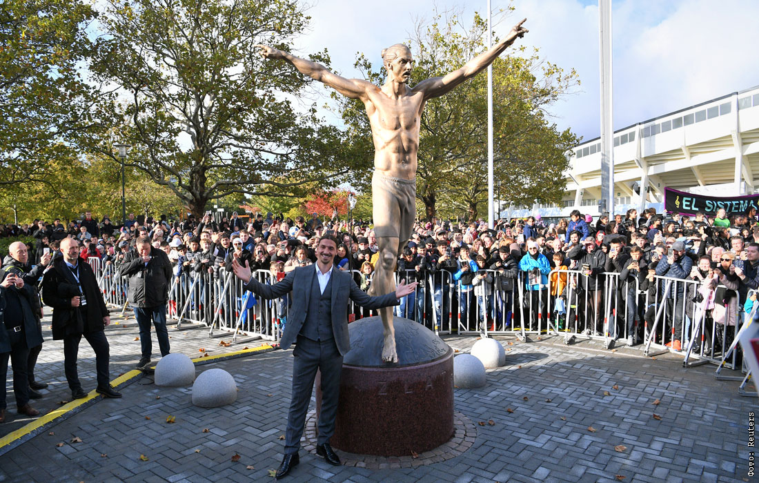 Шведский нападающий "Лос-Анджелес Гэлэкси" Златан Ибрагимович на церемонии открытия собственной статуи у стадиона "Мальме"