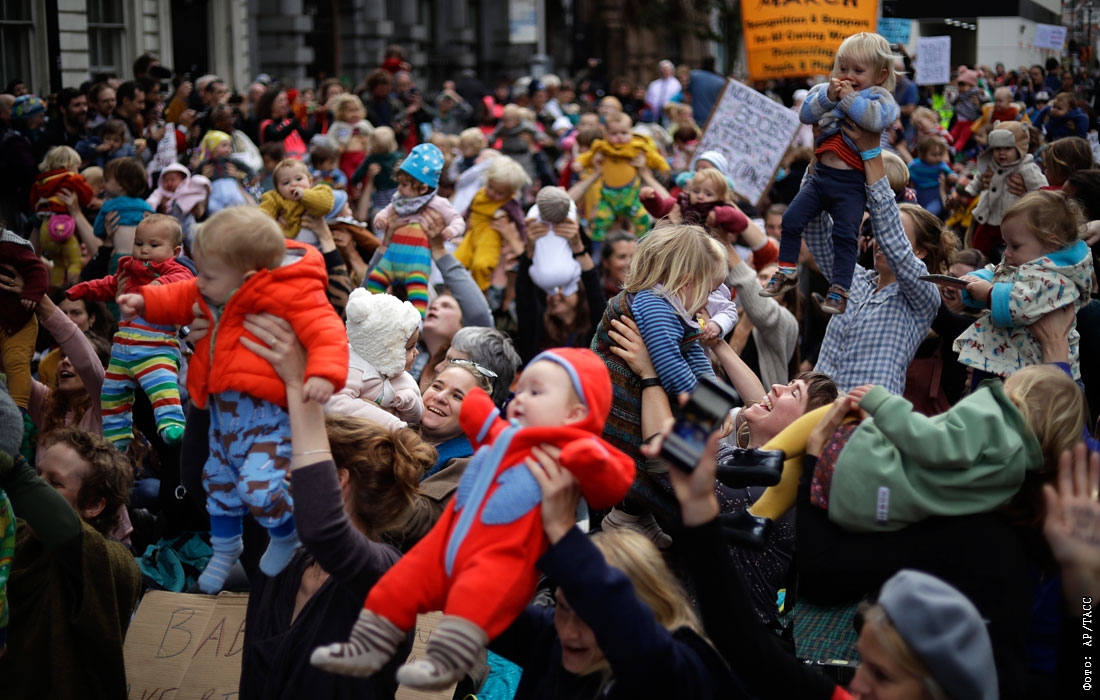 Акция медсестер, посвященная экологическим плюсам грудного вскармливания. Сотни активистов по борьбе с изменением климата разбили лагерь в центре Лондона на третий день всемирных акций протеста.