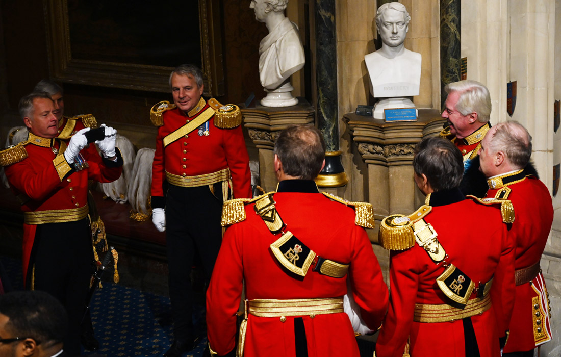 На церемонии присутствовали члены палаты лордов, одетые в церемониальные платья, а также иностранные послы, дипломаты и представители судебной системы