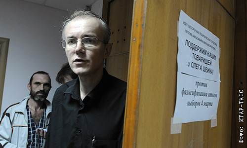 Бывший кандидат в мэры Астрахани Олег Шеин, продолжающий вместе со своими сторонниками многодневную голодовку в знак протеста против фальсификации результатов выборов мэра Астрахани, в приемной партии "Справедливая Россия".