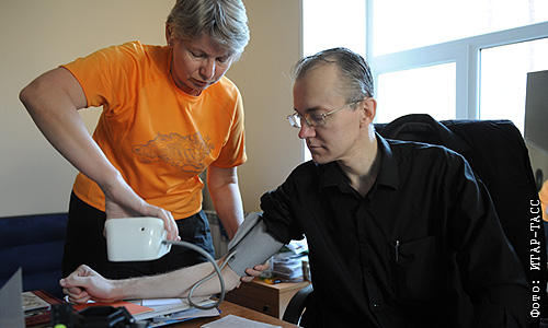 Бывший кандидат в мэры Астрахани Олег Шеин, продолжающий вместе со своими сторонниками многодневную голодовку в знак протеста против фальсификации результатов выборов мэра Астрахани, в приемной партии "Справедливая Россия". Слева - участница голодовки Светлана Лежнева.