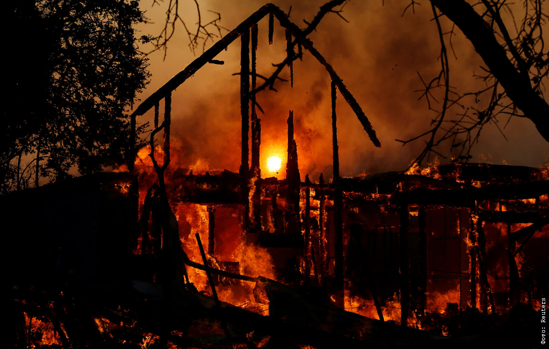 Пожары в округе Сонома на севере Калифорнии, начавшиеся в минувшую среду, выжгли более 220 квадратных километров, уничтожили 94 строения. Под угрозой остаются около 80 тысяч зданий. Распространению огня способствует сильный ветер, скорость которого при порывах превышает 164 километра в час. Почти 200 000 человек получили распоряжение эвакуироваться. В минувшие выходные более чем 2,4 млн потребителей отключили свет, чтобы предотвратить дополнительные пожары из-за обрывов линий электропередач.