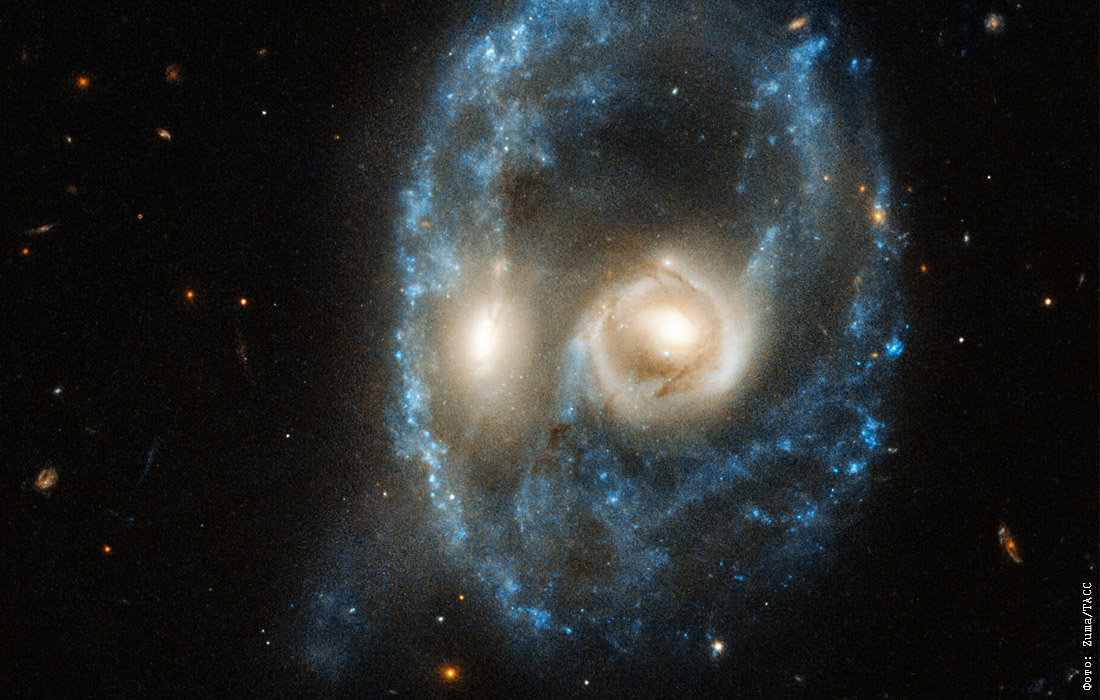 Телескоп "Хаббл" сфотографировал столкновение двух галактик, которое произошло на расстоянии около 700 миллионов световых лет от Земли. Вокруг столкновения образовалось кольцо из звездного вещества.