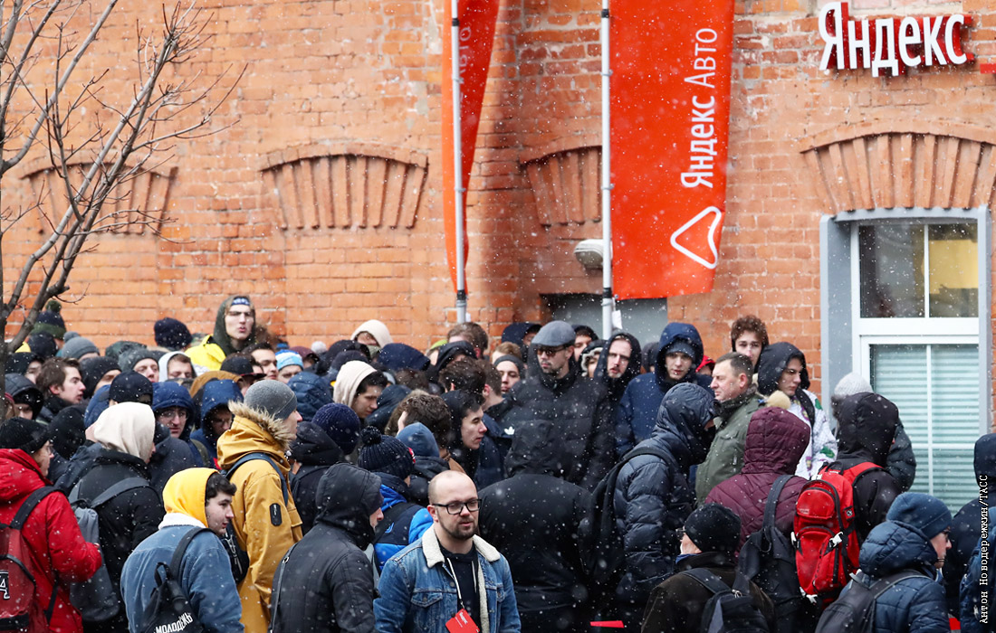 У фирменного магазина "Яндекс" в Москве образовалась очередь из сотни желающих бесплатно обменять старую аудиотехнику на "умную" колонку, которая была представлена компанией в октябре