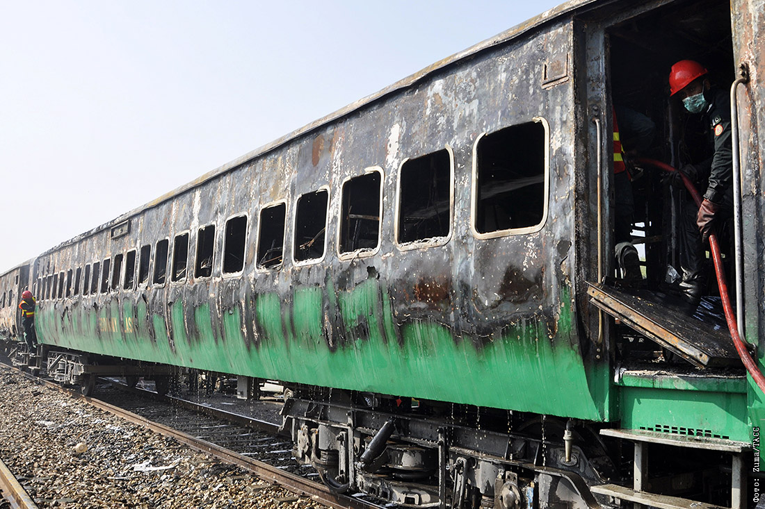 Десятки людей погибли при пожаре в поезде в Пакистане