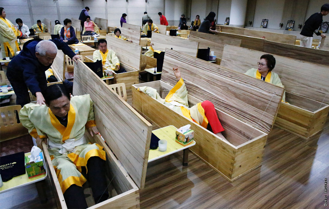 В Сеуле местные компании предлагают клиентам услугу имитации собственных похорон, которая поможет им побороть депрессию и вновь почувствовать вкус к жизни
