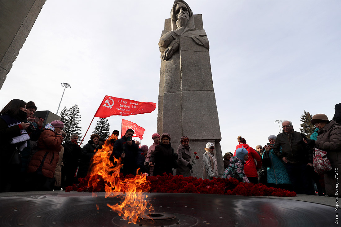 В Новосибирске на мемориальном комплексе "Монумент славы" прошла торжественная церемония зажжения Вечного огня в рамках подготовки празднования 75-летия Победы в Великой Отечественной войне