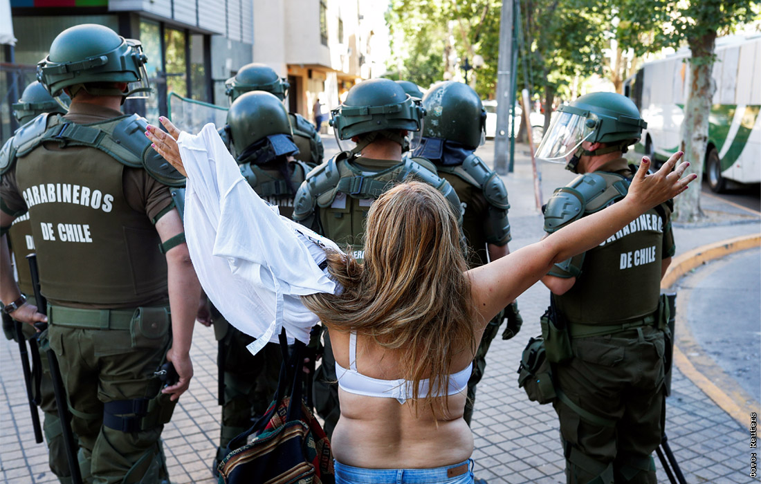 В Сантьяго участники антиправительственных акций протеста находят новые способы обратить на себя внимание общественности