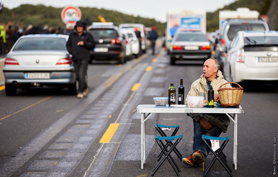 Каталонские протестующие заблокировали дорогу, которая соединяет Испанию и Францию