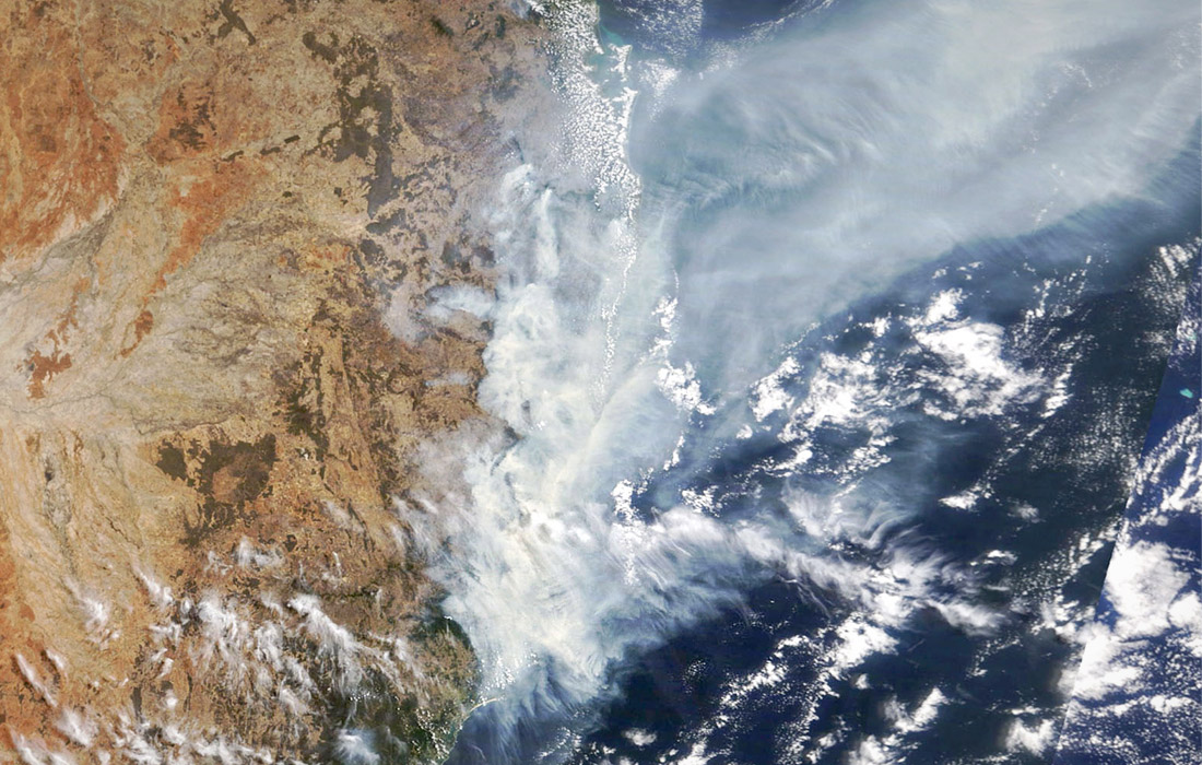 Вид на пожары в штатах Новый Южный Уэльс и Квинсленд из космоса