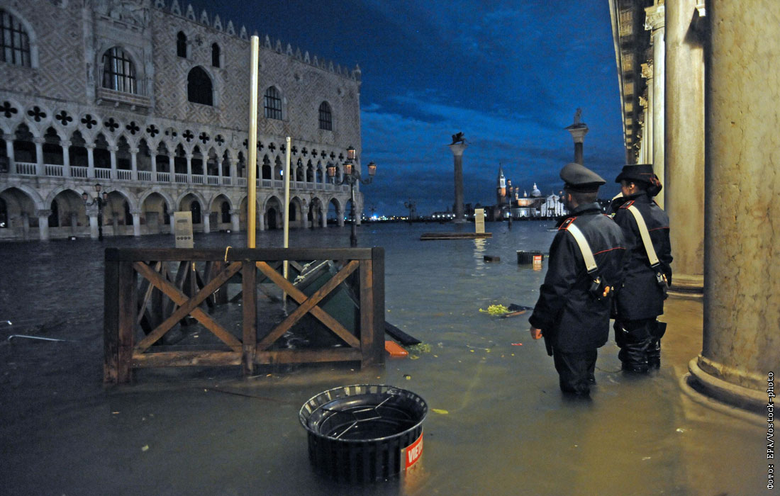 В Венеции из-за проливных дождей затопило более 80% города. Уровень воды поднялся до самого большого значения за более чем 50 лет. Затопило, в частности, центральную площадь Венеции Сан-Марко, одну из главнейших достопримечательностей города. Вода залила крипту находящегося на площади собора Святого Марка, в залах самого собора уровень воды превысил 1 метр. В результате наводнения погибли два человека.