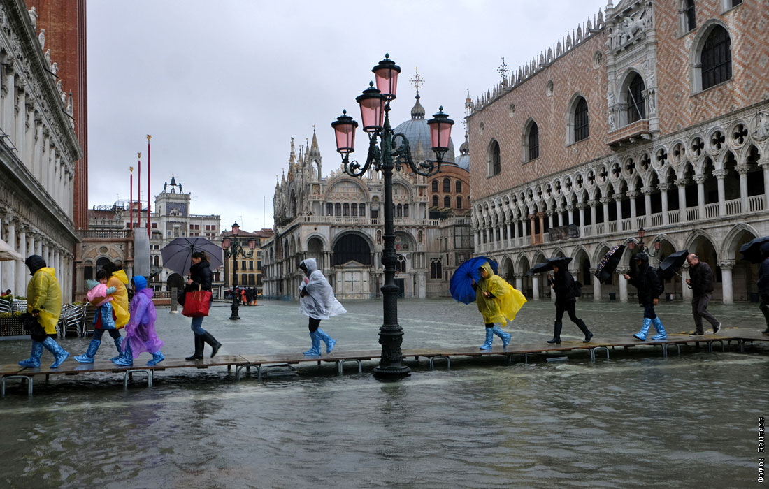 В Венеции из-за проливных дождей затопило более 80% города. Уровень воды поднялся до самого большого значения за более чем 50 лет. Затопило, в частности, центральную площадь Венеции Сан-Марко, одну из главнейших достопримечательностей города. Вода залила крипту находящегося на площади собора Святого Марка, в залах самого собора уровень воды превысил 1 метр. В результате наводнения погибли два человека.