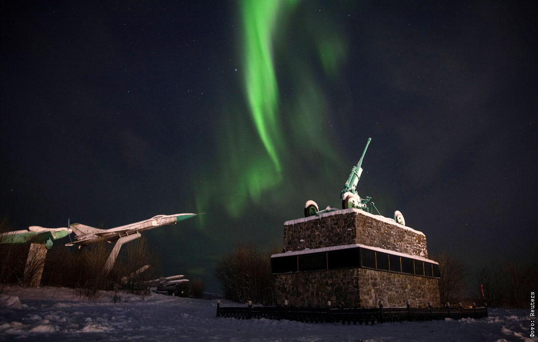 Северное сияние в небе над Мурманском